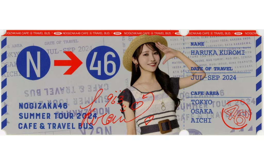 Merchandise Description ■ "Nogizaka46 Manatsu Nationwide Tour 2024 CAFE & TRAVEL BUS" Collaboration Menu Order Bonus 『 Travel Ticket Sticker 』 of the first half period.