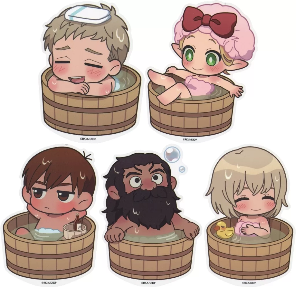 Merchandise Description ■ "Delicious in DUNGEON x gokurakuyu RAKU SPA Oasis for Adventurers" A set of 5 kinds of die cut stickers.