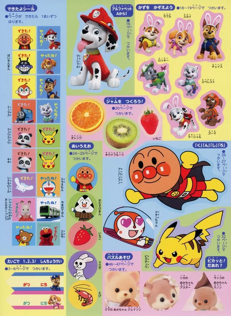 This is the "First Hiragana, Kazu, ABC Sticker" of the binding appendix of the 2025 spring issue.