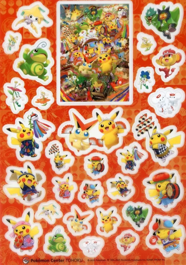 This is a PET sticker with a design of Pokémon people enjoying the festival.