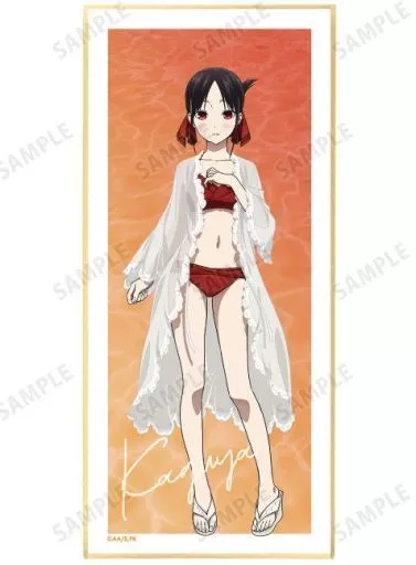 The 『 "Kaguya-sama wants to swim" Animate Fair 』 held at Animate was designed mainly with illustrations of Shinomiya Kaguya, Shirogane Miyuki, Fujiwara Chihana, Ishigami Masaru, Ii Nomiko and Hayasaka Ai. It is finished with colored paper with stand.