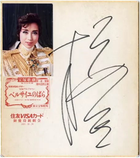 This is an autograph paper with a Official photo of "Mitsui Sumitomo VIZA Shea Ta Takarazuka Grand Roman 『 The Rose of Versailles 』".