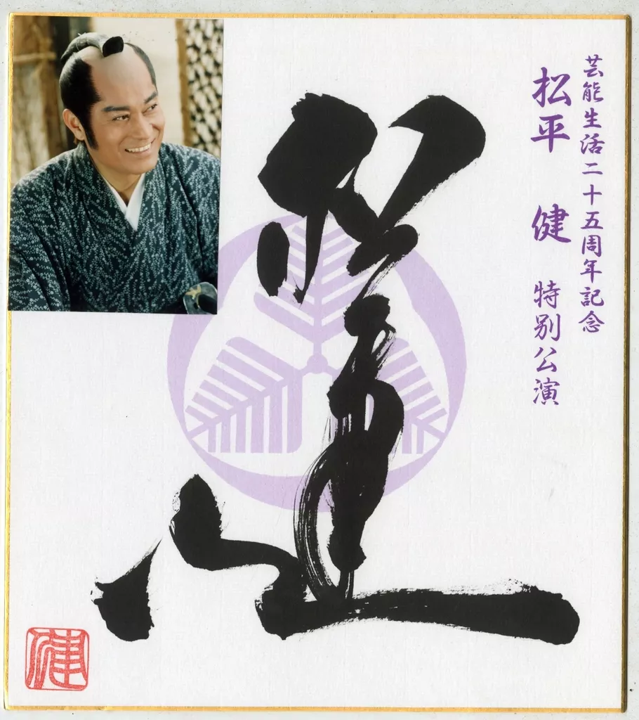 This is a handwritten autograph paper with a photograph of "Product explanation 25th anniversary memorial Ken Matsudaira special performance of entertainment life in ■「".