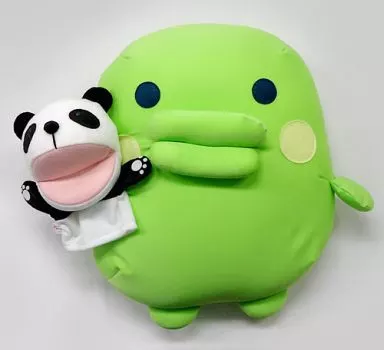 The green tea panda puppet is attached with buttons and is removable.