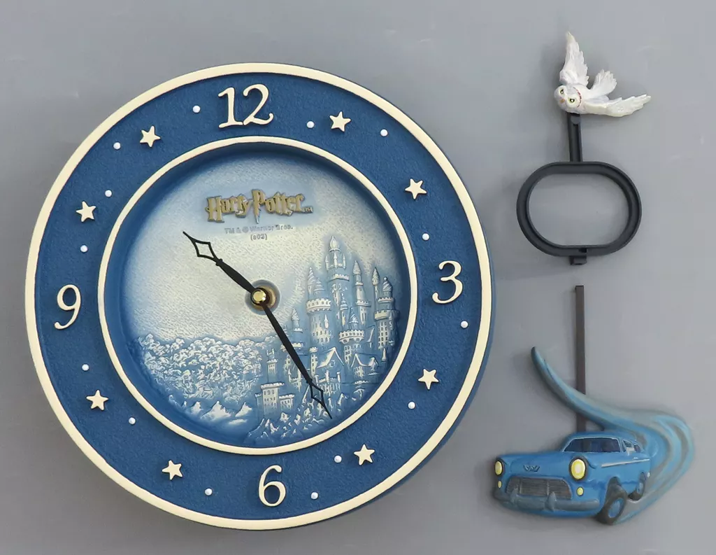商品解説■「ハリー・ポッター」の壁掛け時計です。【商品詳細】付属品:取扱説明書、木ねじ、上振り子、下振り子サイズ:文字盤/直径約25.5cm使用電池:単3乾電池×2