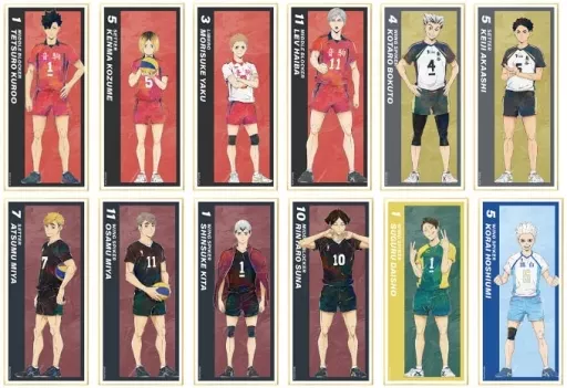 Tetsuro Kuro, Kozume Kenma, Yaku Morisuke, Lev Haiba, Kotaro 木兎, AKAASHI KEIJI, Miyayu, Miyaji, Shinsuke Kita, Rintaro 角名, Masaru Taisho, and Mitsuaki Seikai have been made into colored paper with stand.