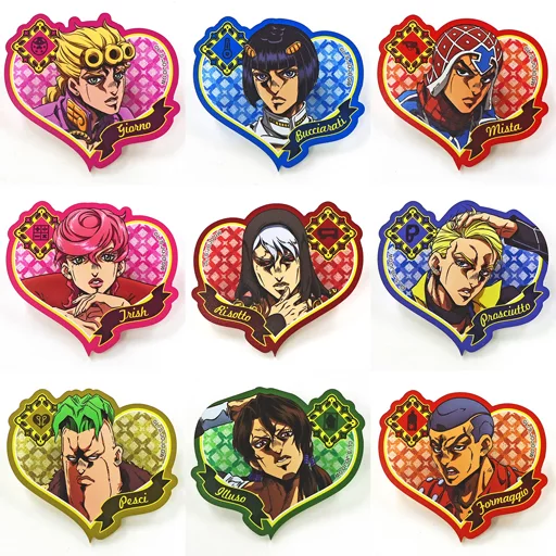Product Explanation ■ This item is a 9-type set of "JOJO'S BIZARRE ADVENTURE No. Gohei Golden Wind JOJO'S BIZARRE ADVENTURE No. 6 Stone Ocean Animation Special Event Jojo ~ New Departure ~ vol. 1 Heart Shaped Lame Acrylic Badge Vol. 1".