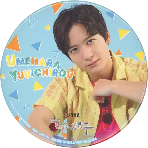 Japanese title: バッジ・ピンズ 梅原裕一郎(背景:三角模様) 缶バッジ~夏色男子~ver. 「宏太朗と裕一郎 ひょろっと男子」 アドアーズ・カプコン・セガ・ナムコ・ラウンドワン限定