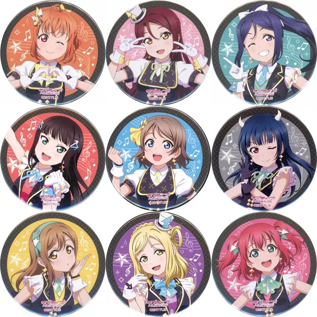 商品解説■「ラブライブ!サンシャイン!! Aqours 6th LoveLive! ~KU-RU-KU-RU Rock ’n’ Roll TOUR~」会場限定ガチャの缶バッジ全9種セットです。