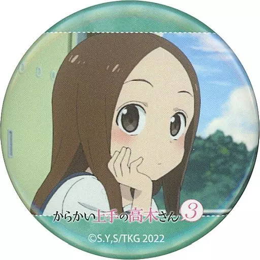 Japanese title: バッジ・ピンズ 高木さん(グリーン/頬杖) 「からかい上手の高木さん3 トレーディング場面写缶バッジ」