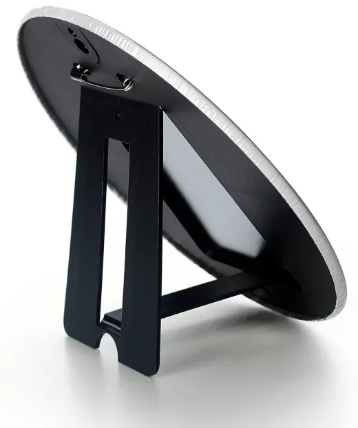It comes with a pin, stand and wall hanging parts on the back. It can be used standing or hanging on the wall.