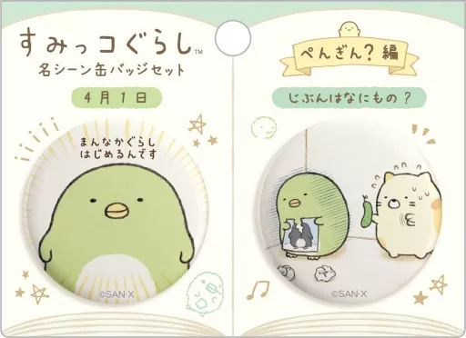 Japanese title: バッジ・ピンズ ぺんぎん?編 名シーン缶バッジセット 絵本アートコレクション 「すみっコぐらし」