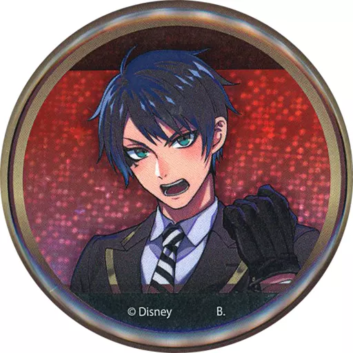 This is a hologram metal badge with a line stamp illustration from "Disney Twisted Wonderland".