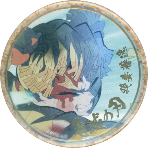 Badge Pins 善逸 Agatsuma (with eyes closed / with hemorrhage)' Demon Slayer: Kimetsu no Yaiba Infinite Train Edition, Yukaku Edition Character Khaka Emaki Cafe in ufotable Cafe× Machi ★ Asobi CAFE End-No Maki 57 mm hot stamping KUJI Hiki metal badge B'