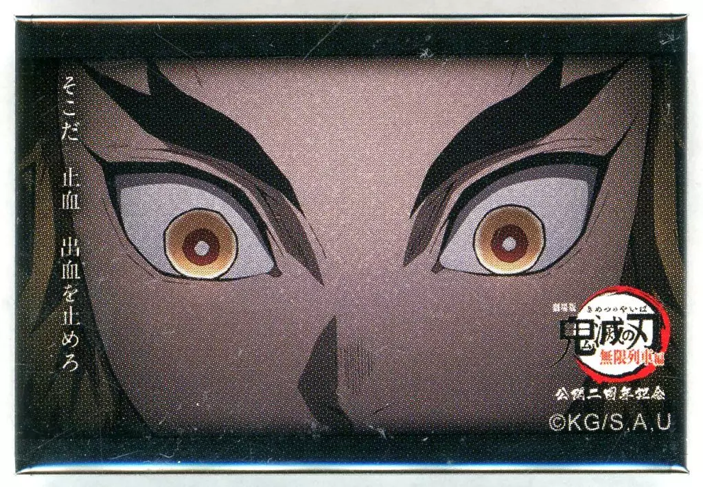 It will be "Demon Slayer: Kimetsu no Yaiba' 119 no Kotoba' Random Square metal badge C" from "Kyojuro Rengoku Mugen Train 2nd anniversary".