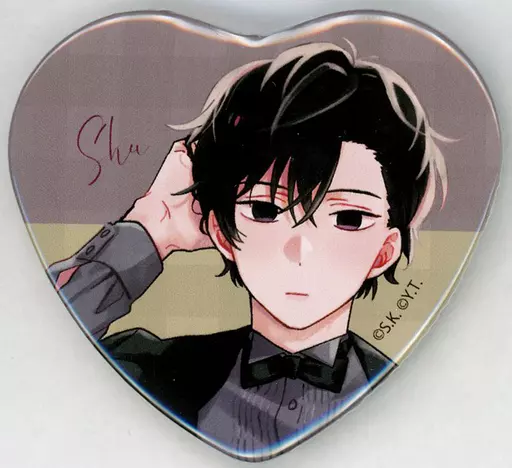 This is a heart metal badge with illustrations and comic illustrations by Ms. Sawa Kantsume.