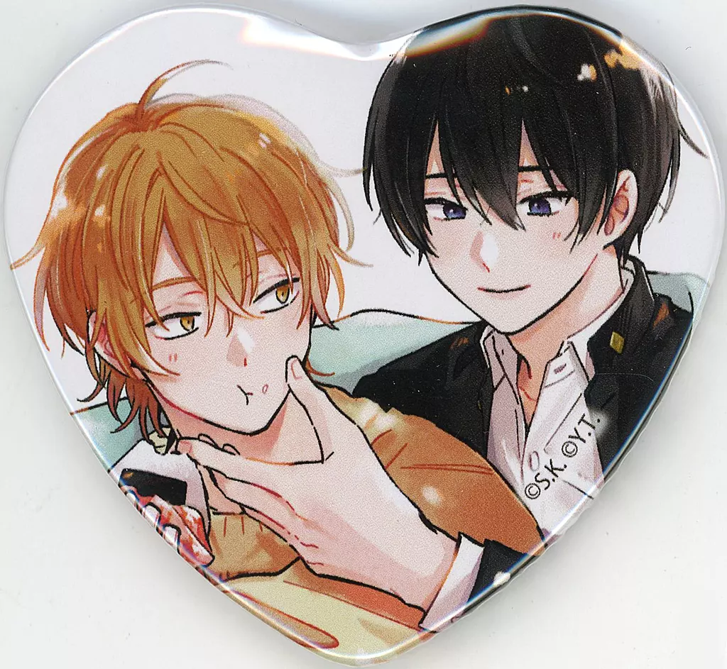 This is a heart metal badge with illustrations and comic illustrations by Ms. Sawa Kantsume.