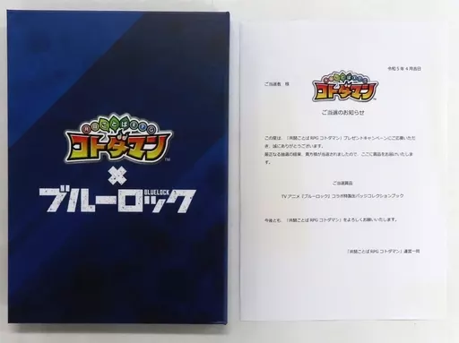 This is "Collaboration Special metal badge Collection Book" which won the Twitter campaign of "Blue Rock x Joint Fight Kotoba RPG Kotodaman".