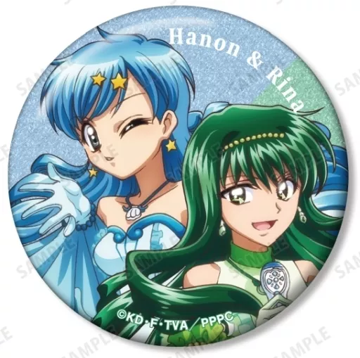 七海るちあ、宝生波音、洞院リナの描き下ろしイラストをグリッター加工を施した缶バッジに仕上げました。