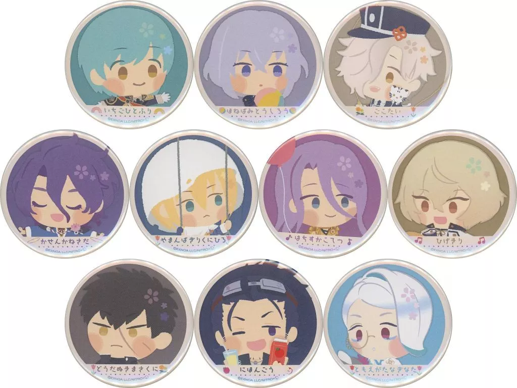 Product Explanation ■ "DMM Scratch! Wangpac! Sword Ranmai 〜 Minna Togo Wangpac Tamu 〜 Vol. 2" E-prize prize metal badge 10-type set.