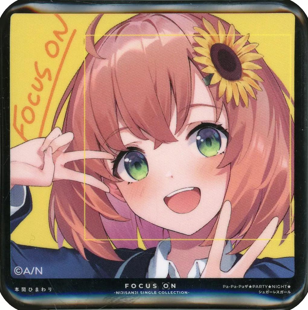 Japanese title: バッジ・ビンズ 本間ひまわり 「バーチャルYouTuber にじさんじ FOCUS ON ランダムスクエア缶バッジ vol.1」