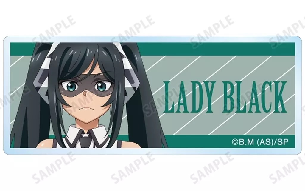 An acrylic name plate with illustrations of Shy, Momijiyama Teru, Koishikawa Koreko, Spirits, Stardust, Lady Black, and ミェンロン.