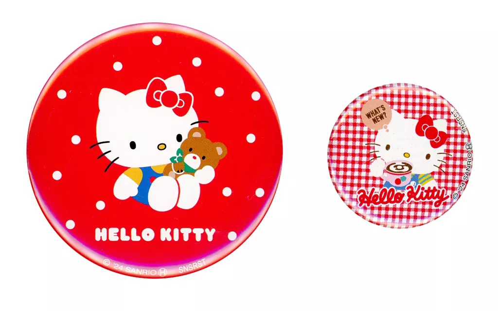 Japanese title: バッジ・ビンズ ハローキティ(白ドット) 「サンリオキャラクターズ ハローキティ50周年 缶バッジ2コセット A」