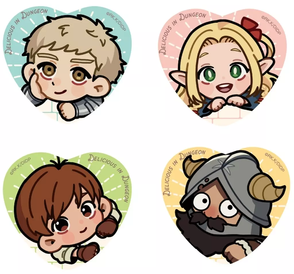 『 Heart metal badge Set (4-type set) 』 from "Delicious in DUNGEON" is now available.