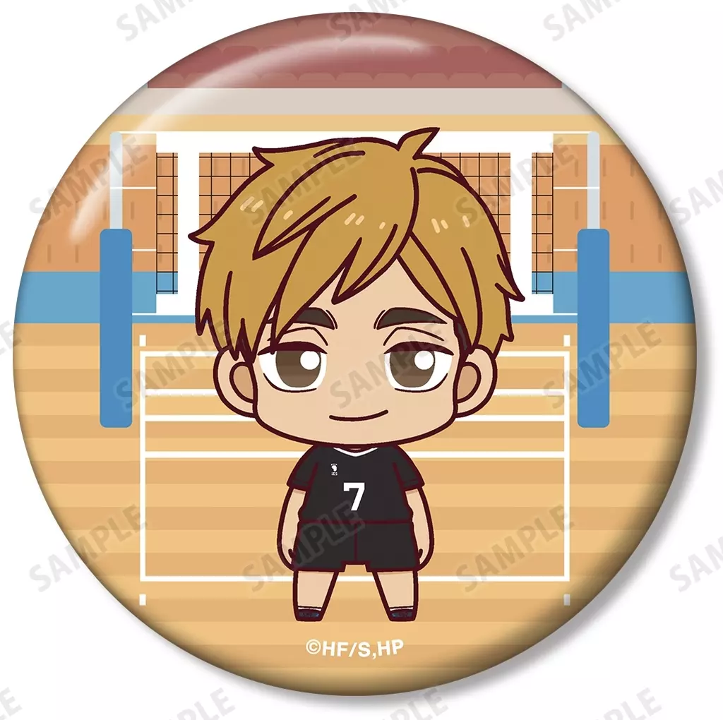 > Toru Oikawa, Hajime Iwaizumi, Tetsuro Kuro, Kozume Kenma, 若利 Ushinoshima, Satoru Tendo, Kotaro 木兎, AKAASHI KEIJI, Miyayu, Miyaji, Mitsuaki Hoshikai, and Yukio Hirugami created a new picture of Chibi Character standing on a small scale and made it into a metal badge.
