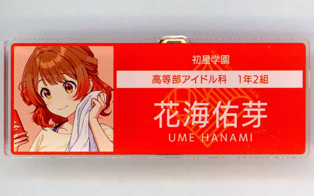 Japanese title: バッジ・ビンズ 花海佑芽 「学園アイドルマスター トレーディングアクリルネームプレート」