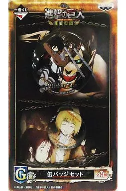 Japanese title: バッジ・ピンズ(キャラクター) ミカサ&エレン(巨人化)&アルミン 缶バッジセット 「一番くじ 進撃の巨人~自由の翼~」 G賞