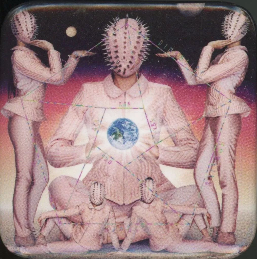 The jacket picture of the past single & album has become a square metal badge.