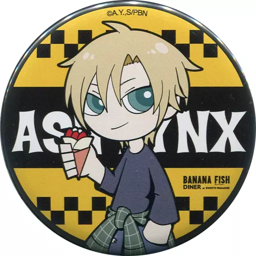 Japanese title: バッジ・ピンズ(キャラクター) アッシュ・リンクス(クレープver.) 「BANANA FISH DINER in SWEETS PARADISE SDトレーディング缶バッジ」