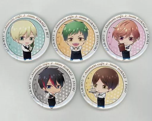Product Description ■ 『 Original metal badge Set (5-pack) 』, limited to "Star-Myu x Ataraki Shea Cafe".