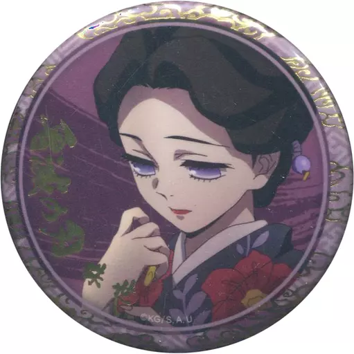 This is "Random metal badge A with a hot stamping of 56 mm" from "Demon Slayer: Kimetsu no Yaiba Character Picture Scroll Cafe in ufotable.