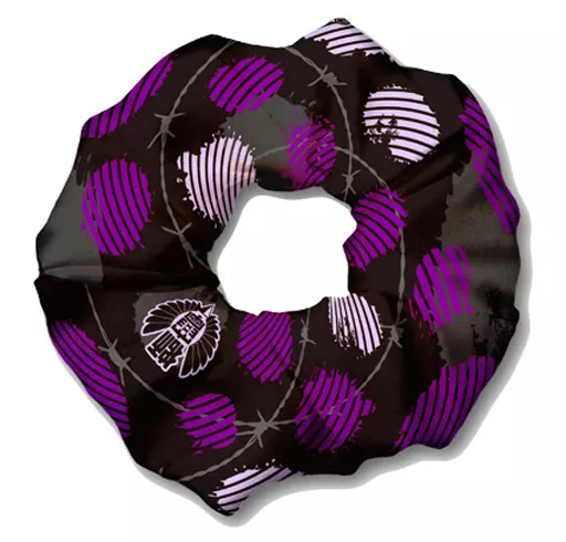 This scrunchy is a hair accessory made of a soft fabric called A J Esthete Luis.
