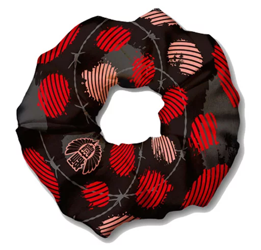 This scrunchy is a hair accessory made of a soft fabric called A J Esthete Luis.