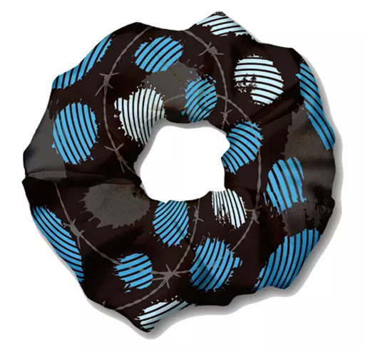 This scrunchy is a hair accessory made of a soft fabric called A J Esthete Luis.