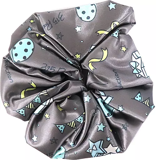 This is a scrunchie with a cute design with an allover pattern in the color with the image of a unit.
