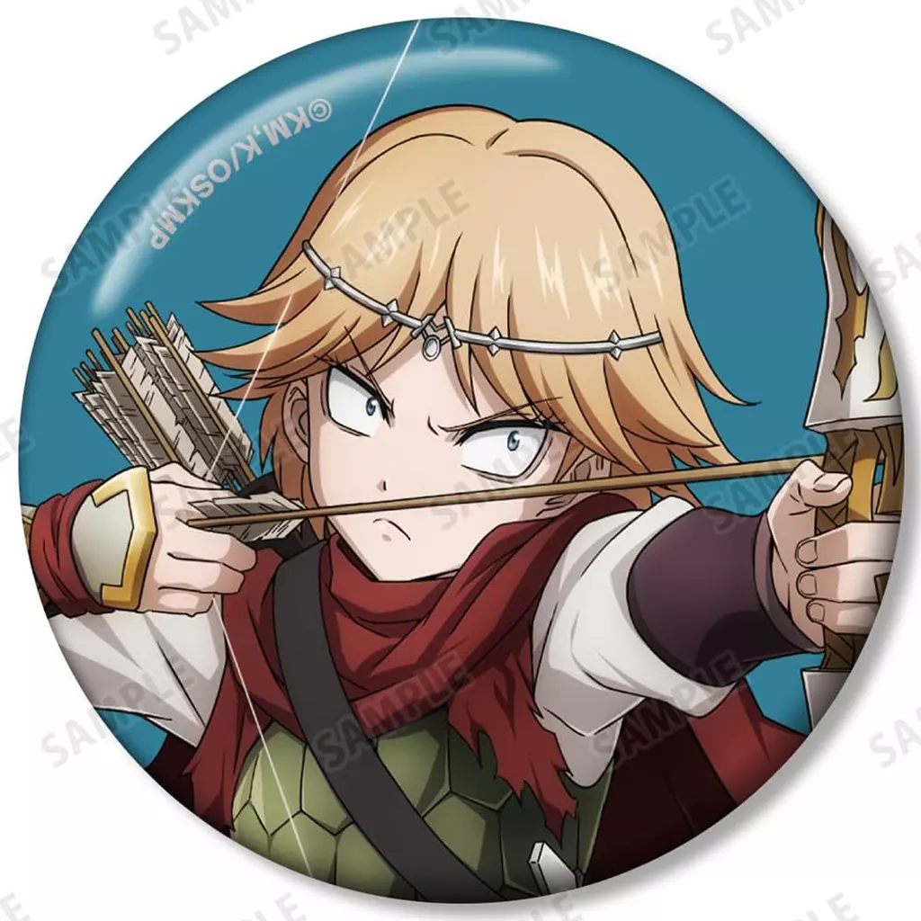 Illustrations of Ainz, Albedo, ヤルダバオト, Naea, Remedios, Kalka, and Celart are made into metal badge.
