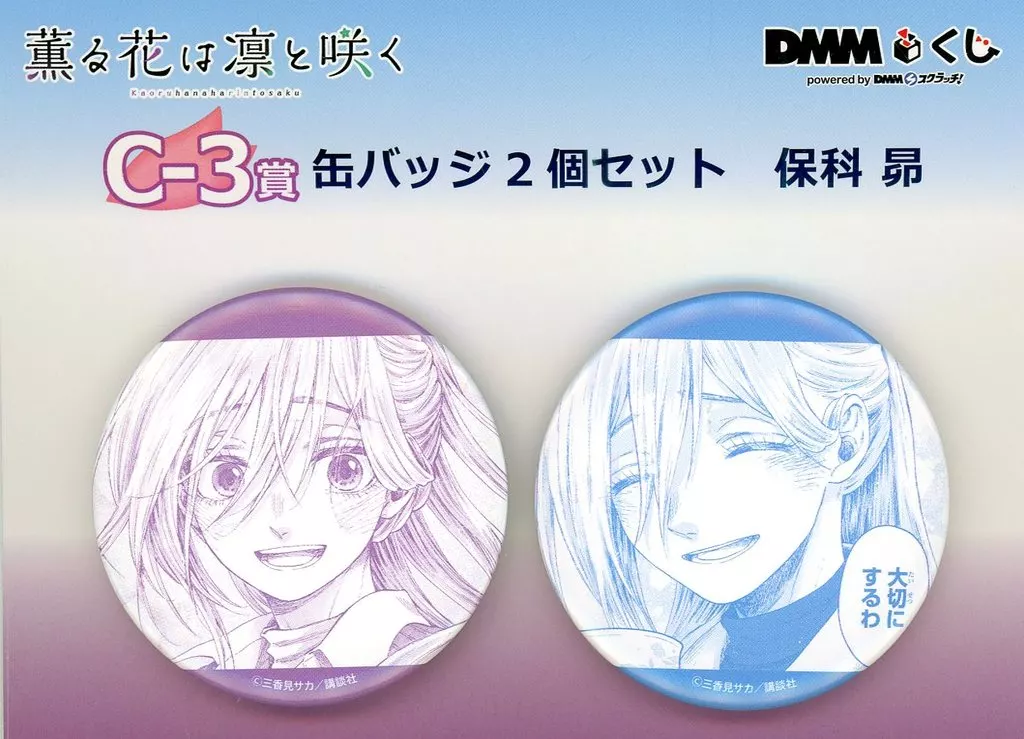 商品解説■「DMMくじ 原作『薫る花は凛と咲く』」景品です。キャラクターごとの缶バッジ2個セットです。【商品詳細】サイズ:直径約56mm
