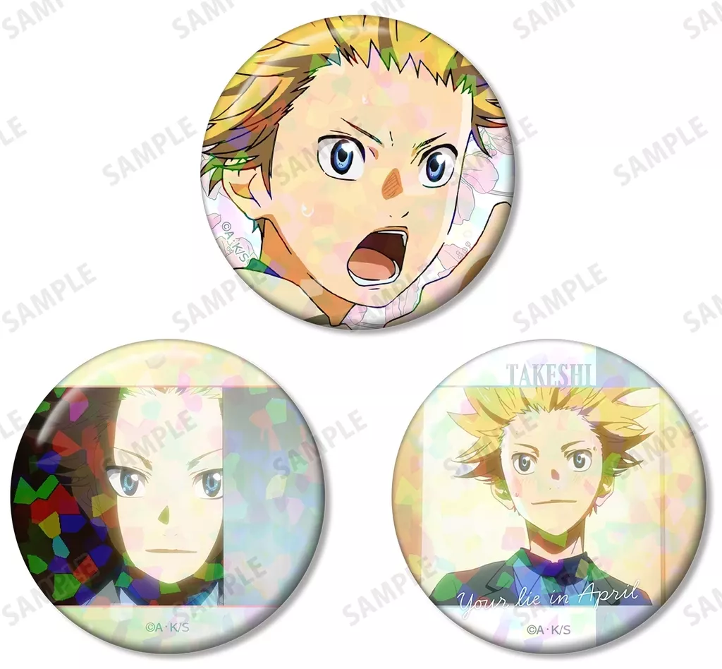 Now available is a 3-piece set of hologram metal badge from the TV animation "Your lie in April".