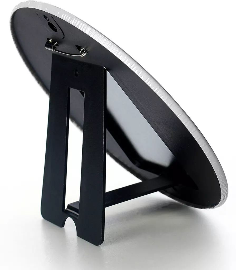 The back comes with a pin, stand and wall hanging parts, so you can hang it up or hang it on the wall.