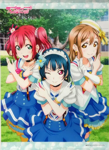 This is a B2 size Tapestry with the illustration of Yoshiko, Hanamaru and Ruby by Yuhei Murota decorated on the cover of Dengeki G''s magazine.