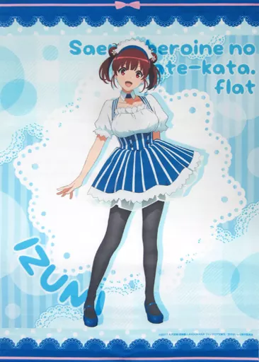 This is a Tapestry with an illustration of wearing a maid style costume with blue and white stripes in the image color of LAWSON!