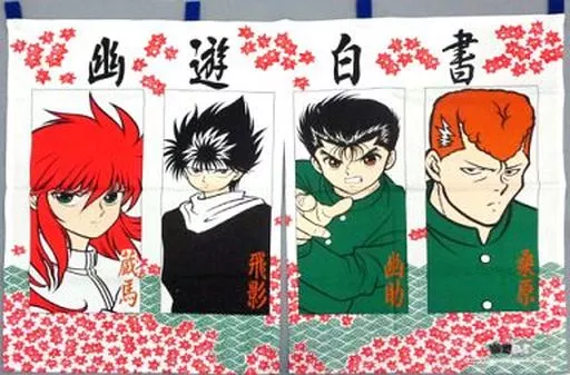 A shop curtain designed by 4 people, Yusuke, Kuwahara, Kurama and Hiei, is now available from 「 YuYu HAKUSHO 」.