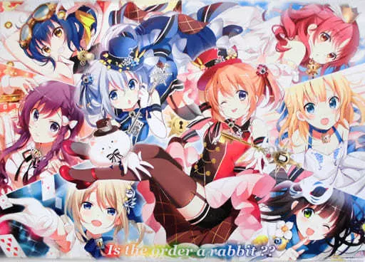This is a B1 Tapestry with gorgeous illustrations of Rize, Chiya Ujimatsu, Shallow, Maya, Meg and Aoyama Blue Mountain, as well as cocoa and chino in magician costume.