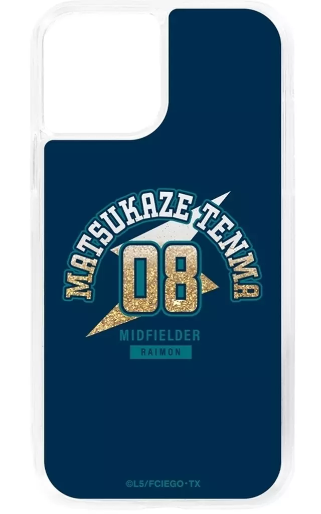 The name of Matsukaze Tenma, the letter of the position and the uniform number are made into a glitter iPhone case.