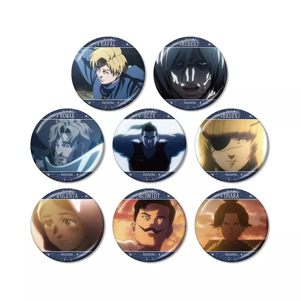 ラファウ、フベルト、ノヴァク、オクジー、バデーニ、ヨレンタ、シュミット、ドゥラカの印象的なシーンをメタリック仕様の缶バッジに仕上げました。