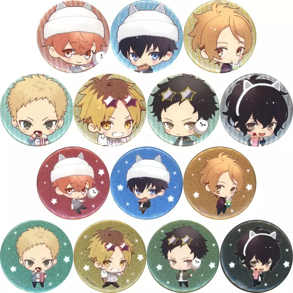 Sato san's illustration of Mafuyu Sato, Riska Uenoyama, Chun Shu Nakayama, Akihiko Kaji, Hiiragi Kashima, Genjun Yagi and Ugetsu Murata has been made into metal badge with glitter processing.